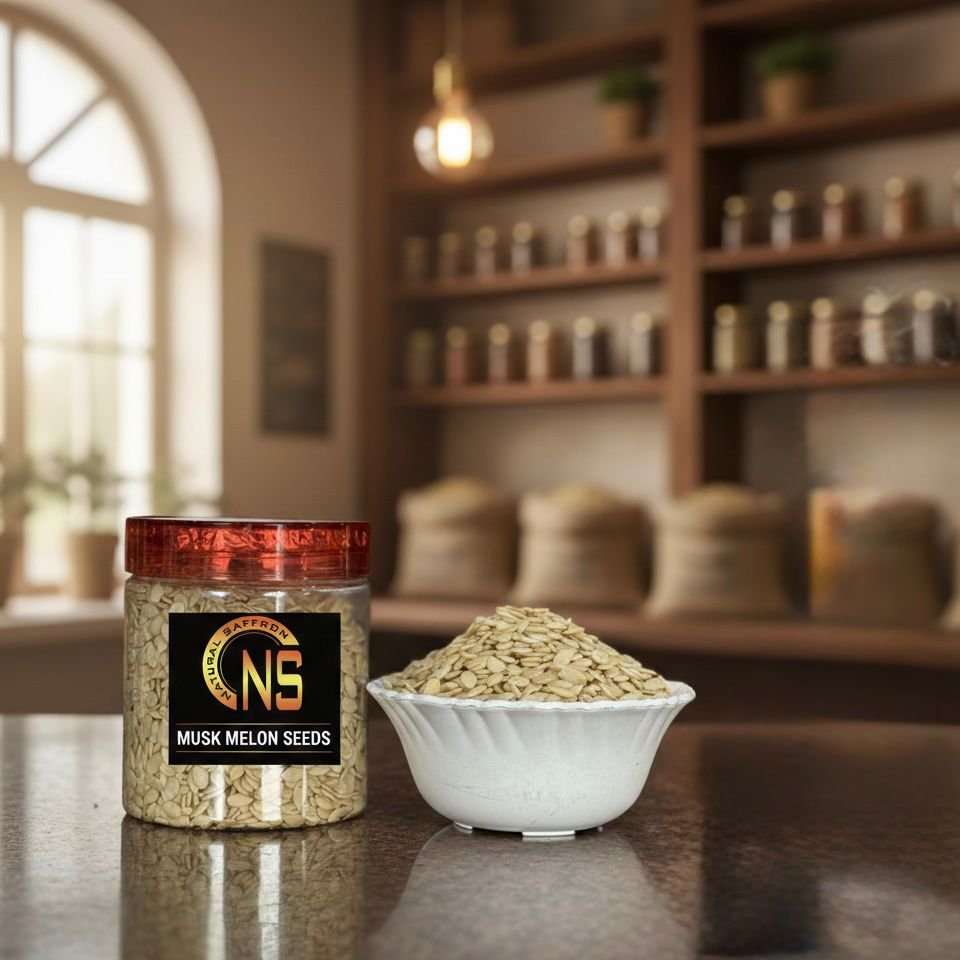Natural Saffron Premium Musk Melon Seeds, also known as magaz seeds, are valued for their mild nutty flavor and versatility in cooking. These seeds are commonly used in Kashmiri and Indian sweets, desserts, and healthy snacks. Carefully selected and packed, they offer freshness and natural taste in every bite.